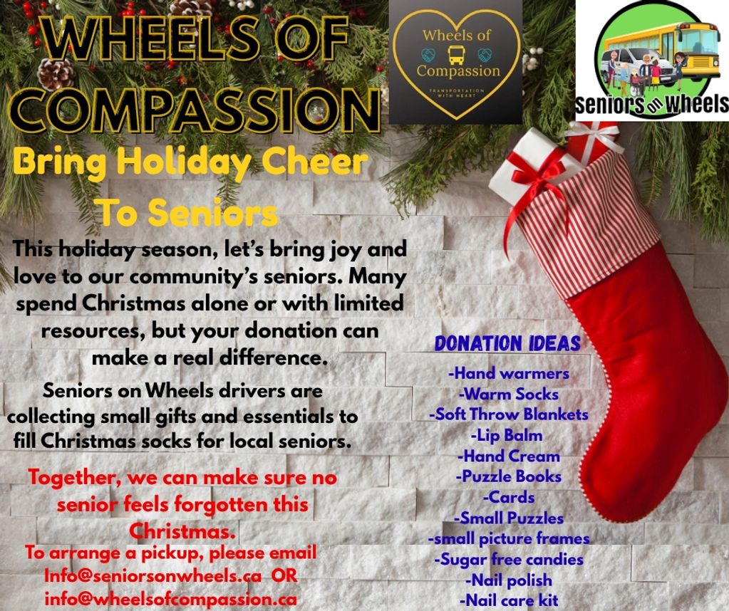 Join Wheels of Compassion and Seniors on Wheels in spreading love, joy, and hope through thoughtful stocking donations. 🎁❤️✨